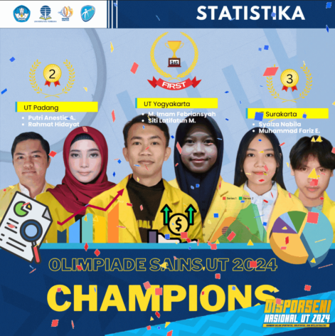 Dua mahasiswa program studi S1 Ilmu Statistika, yaitu Rahmat Hidayat dan Putri Anestia Amir, berhasil meraih Juara II dalam cabang Olimpiade Sains Tingkat Nasional, mengungguli puluhan peserta dari berbagai UT Daerah se-Indonesia.