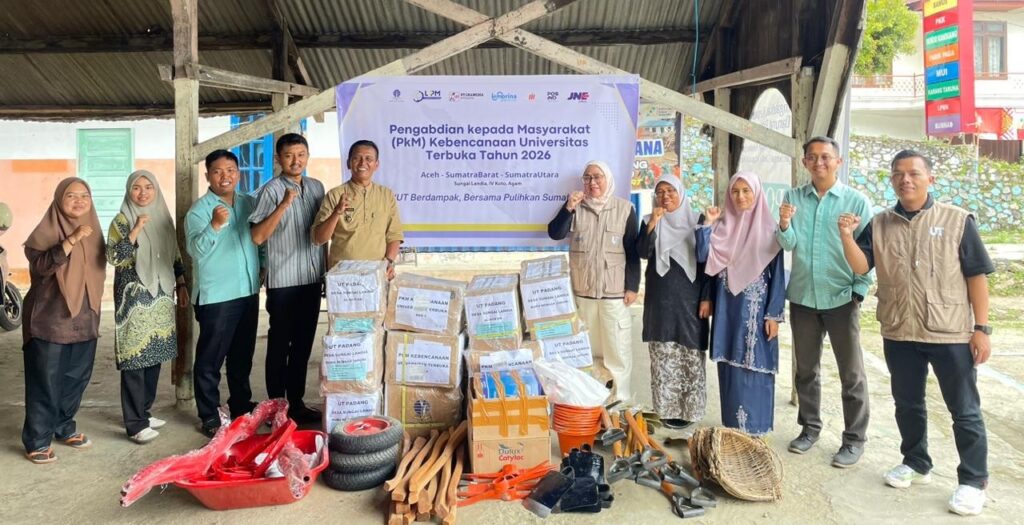 Agam, 27 Maret 2026 – Universitas Terbuka (UT) Padang kembali melaksanakan kegiatan Pengabdian kepada Masyarakat (PKM) Kebencanaan dengan menyalurkan bantuan kepada masyarakat terdampak bencana di Sungai Lindau, IV Koto, Kabupaten Agam, pada Jumat, 27 Maret 2026.